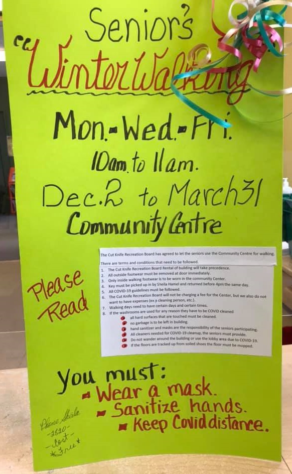 The Cut Knife Recreation Board has agreed to let the seniors use the Community Centre for walking.