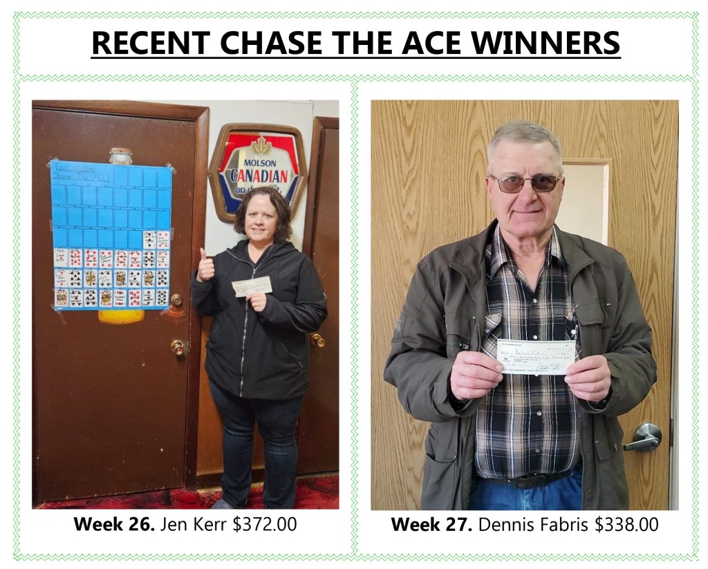 Congratulations to our Week #26 and #27 CK Chase the Ace Winners Jen Kerr and Dennis Fabris! The jackpot is now over $9,000 and you can join the fun by purchasing tickets ($10 each) at local businesses or send an e-transfer to ckchasetheace@gmail.com. Also be sure to follow the Facebook Page to watch the Live Draw every Thursday night at 7:30 PM!
