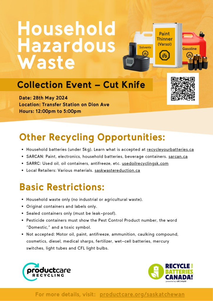 On May 28th from 12:00 PM to 5:00 PM the Household Hazardous Waste program will be hosting a Waste Collection event at the Transfer Station / Landfill (located on the grid road near the east end of town).