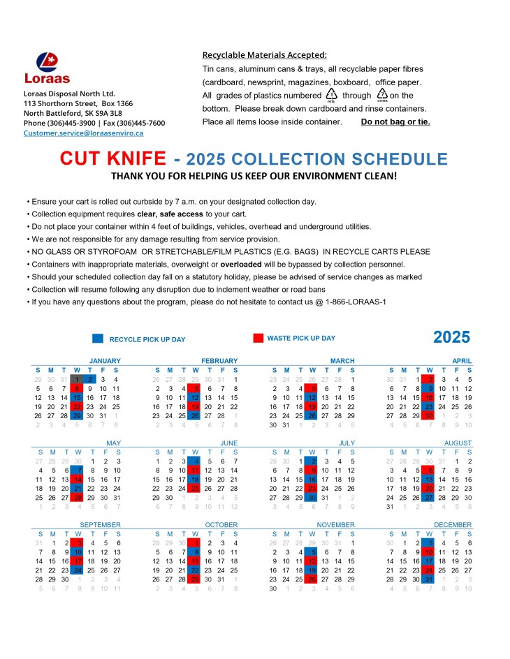 Here is the 2025 Loraas Environmental schedule. You can save the photo, download the .pdf copy or pick up a physical copy at the Town Office.
