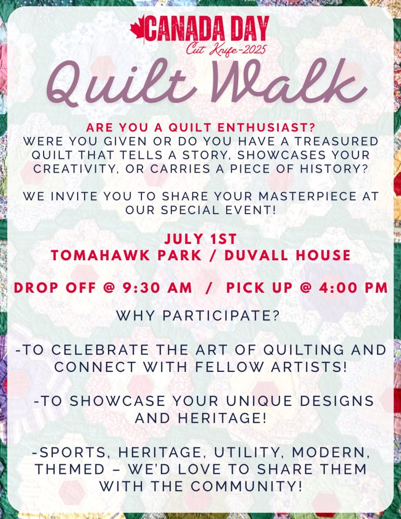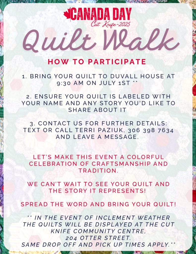 Here are several more fun activities going on in Cut Knife during this year’s Canada Day celebrations. If you still wish to sign-up for the parade, be a vendor to sell items or register a team for the bed races please contact the Town Office at (306) 398-2363. For more information view all of the posters below: