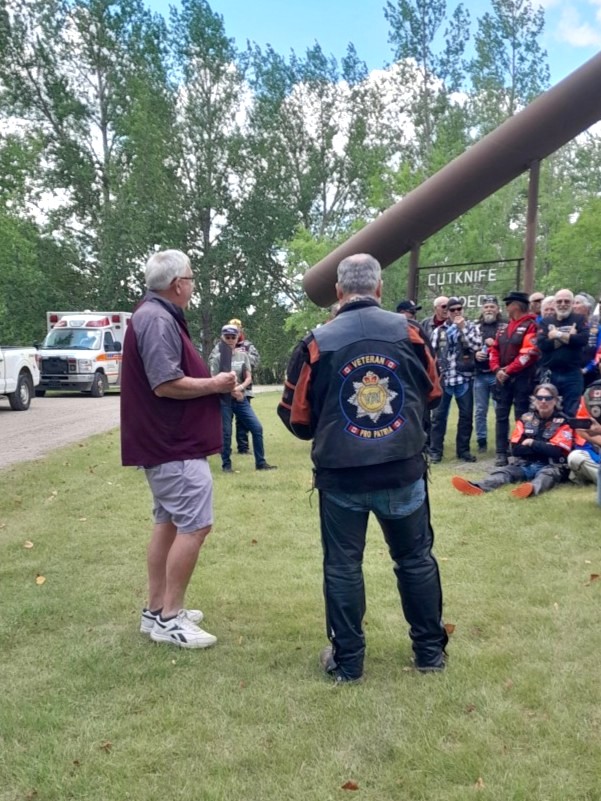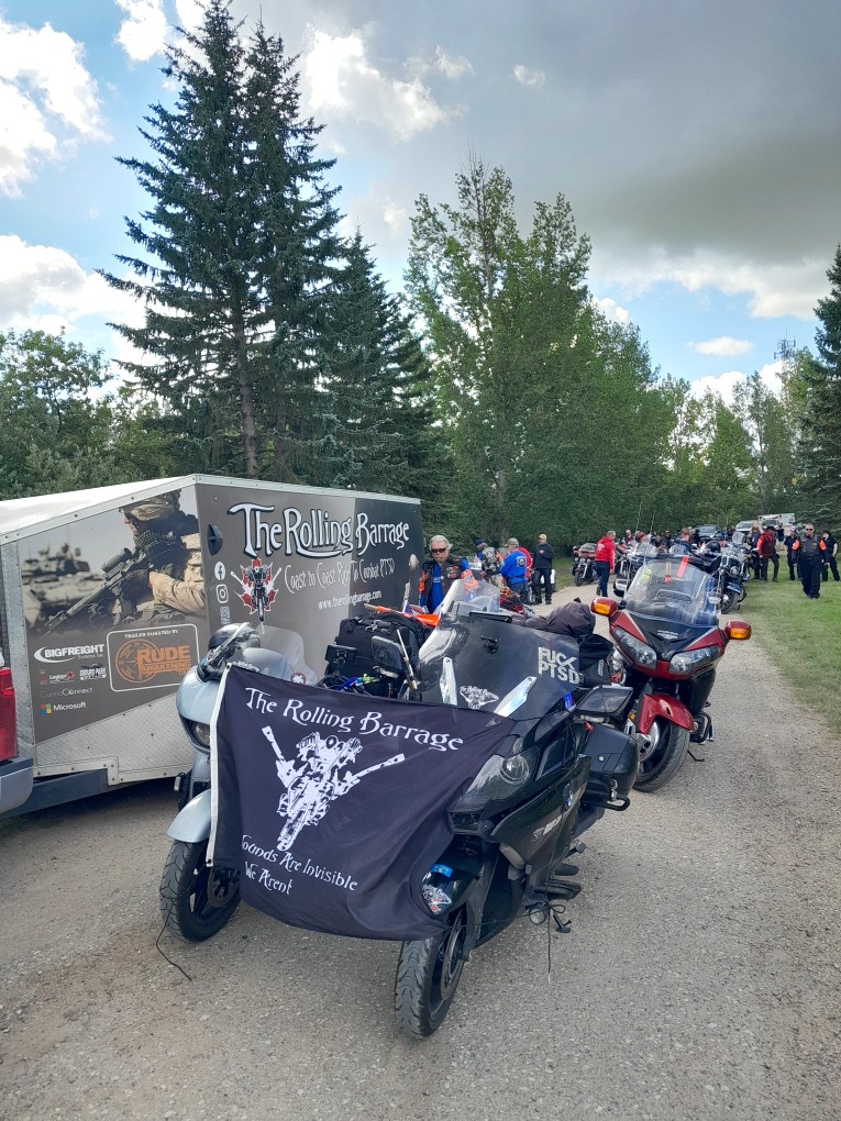We would like to thank the Rolling Barrage Coast to Coast Motorcycle Ride for stopping by the Tomahawk Park today during the lunch hour. This group helps raise awareness to end the stigma of PTSD by riding across Canada. It was a great turnout and big thanks to Cut Knife AG Foods for supplying bottled water for all of the riders. Donations for the Rolling Barrage are accepted all year round. For more information click here to visit their website.