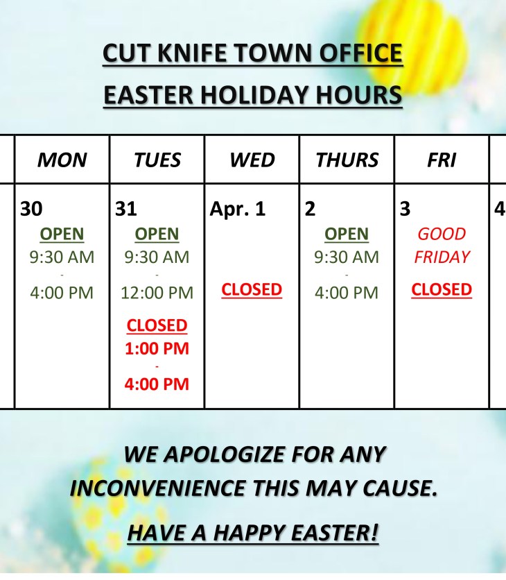 A message from the Cut Knife Town Office: Click here to view the .pdf file.