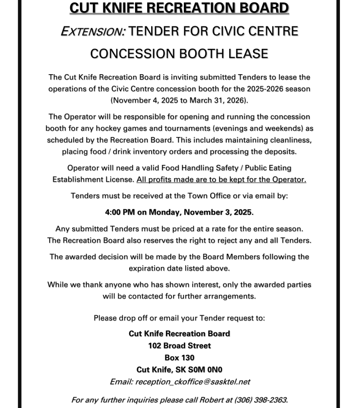 A message from the Cut Knife Recreation Board: Click here to view the .pdf file.