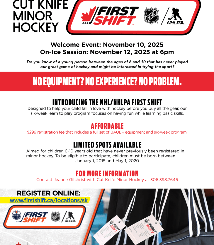 A message from Cut Knife Minor Hockey: Spots are still available for sign-up.