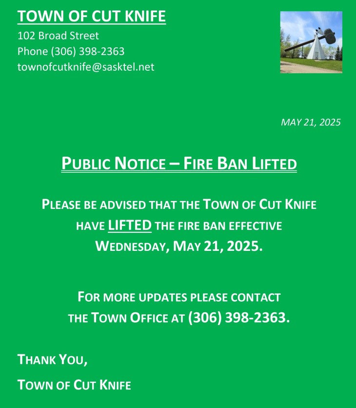 A message from the Town Office of Cut Knife: Click here to the the .pdf…